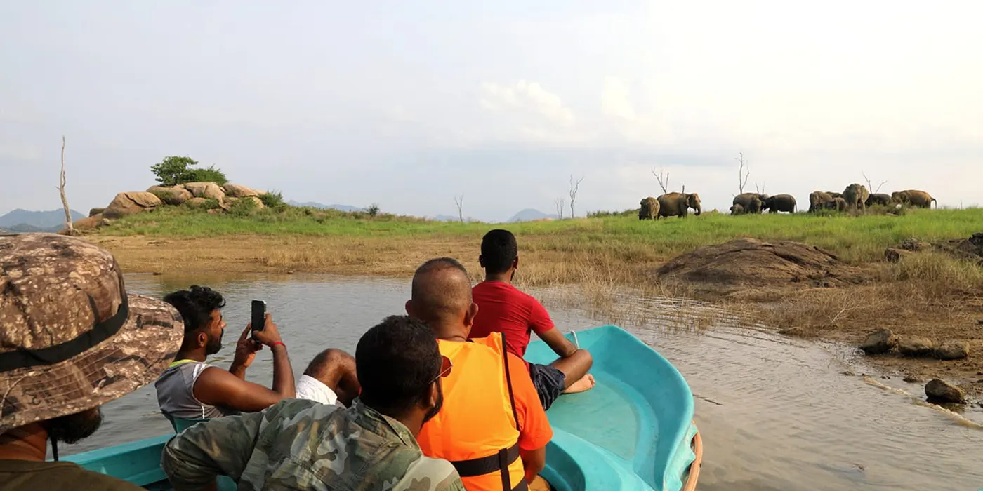 The guided boat safari takes place on the Senanayake Samudraya reservoir, following routes along island edges and shoreline zones where wildlife activity is most likely. The guide navigates slowly and adjusts positioning based on animal movement and visibility. Depending on conditions, guests may observe elephants, deer, crocodiles, and a variety of bird species. The experience emphasizes steady observation rather than movement between multiple locations.