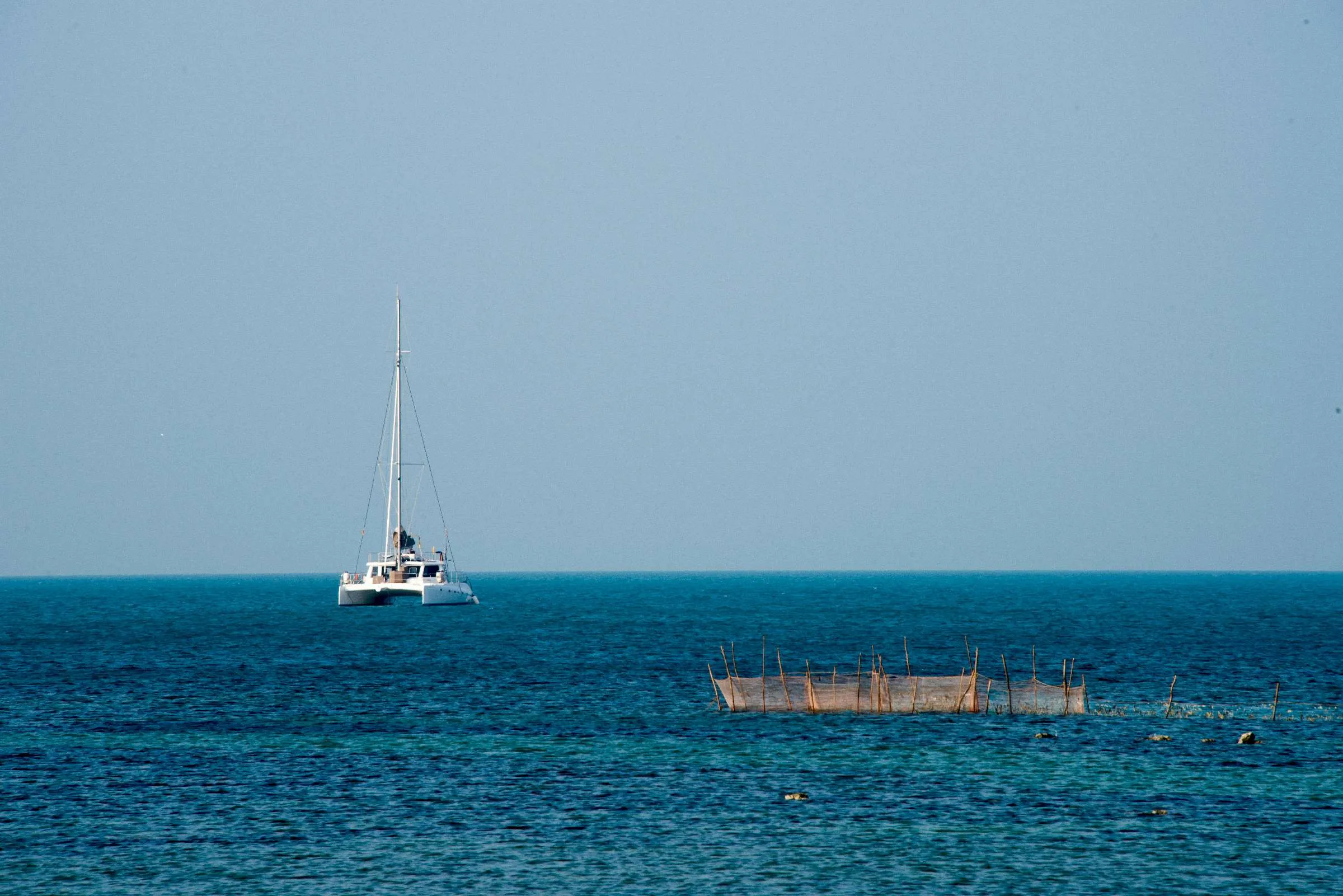 Guests board the catamaran at the designated location in Trincomalee. The crew provides a safety briefing and explains the planned sailing route and expected conditions.